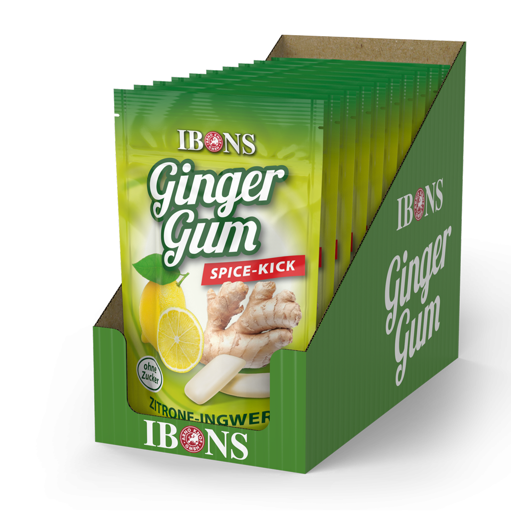 IBONS Kaugummi Zitrone-Ingwer zuckerfrei Display